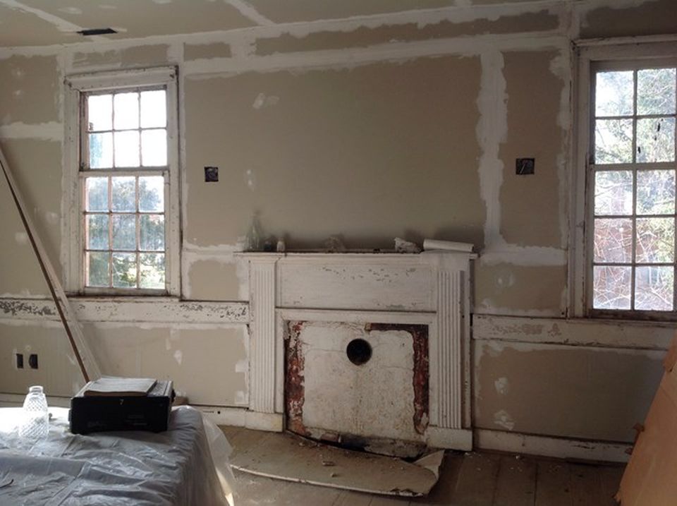 First floor includes master suite (plus build out for master bath), family room with fireplace, large living room with fireplace, formal dining room, kitchen with walk-in pantry, laundry, mudroom, and bathroom. Also includes two storage closets. Second floor includes five bedrooms with closets, small office/den, and full bath. The first floor has been renovated and updated. Second floor has been partially renovated, but will require additional work before several of the rooms are move-in ready.