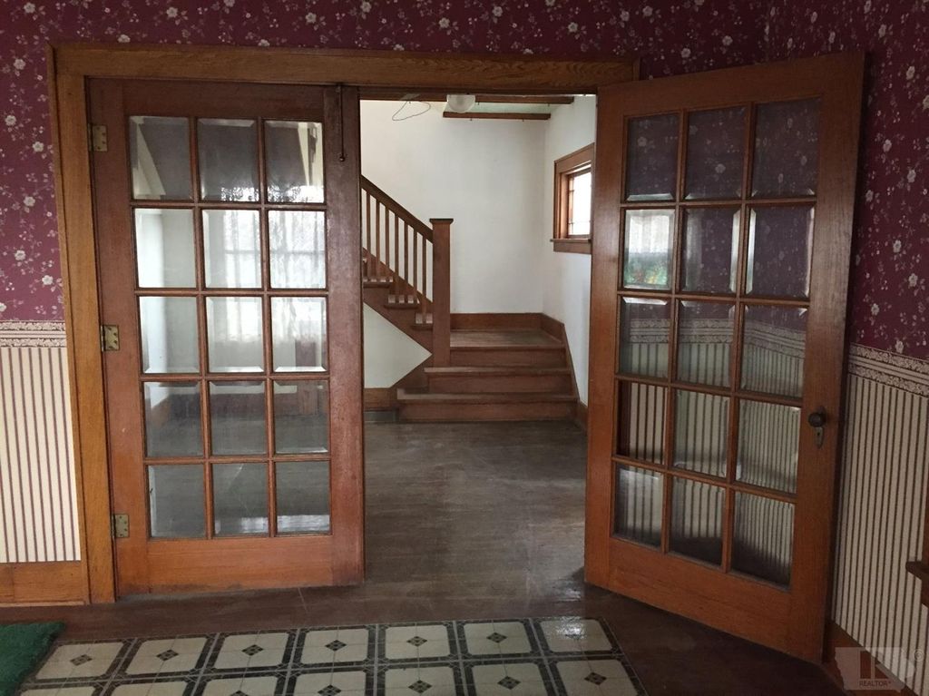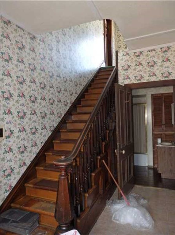 POTENTIAL TO BE REMARKABLE PERIOD HOME. ORIGINAL UNPAINTED WOODWORK. AMAZING PILLARS THRU WIDE OPENING INTO LIVING ROOM. BREATH TAKING INTO THE ENTRY! STAINED GLASS IS AMAZING! SOME NEWER FLOORING, WINDOWS, NEWER PAINT IN SOME ROOMS. 3RD FLOOR HAS 4 ROOMS–2 FOR BEDROOMS AND 2 FOR WALK IN CLOSETS. HOUSE NEEDS SOME WORK BUT HAS VERY GOOD BONES. NICE, PARTIALLY FENCED IN YARD, QUIET STREET, PLENTY OF PARKING.