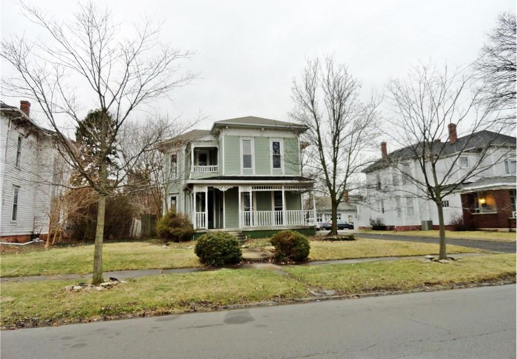 An older home that has had some updates and some unique features. This home has 4 bedrooms and two full baths. It has a newer hi-ef furnace and some newer wiring. On the main floor you will find a kitchen with attached laundry room, a full bath, large living room with fireplace, a foyer, and two stairways. The upper level has four bedrooms and a full bath. The basement has four large rooms and high ceiling with potential for living space. There is a one car garage. The home sits on a large lot. The home has oak floors, set of French doors and a large fireplace. There is a wraparound porch, partially enclosed and an enclosed back porch.