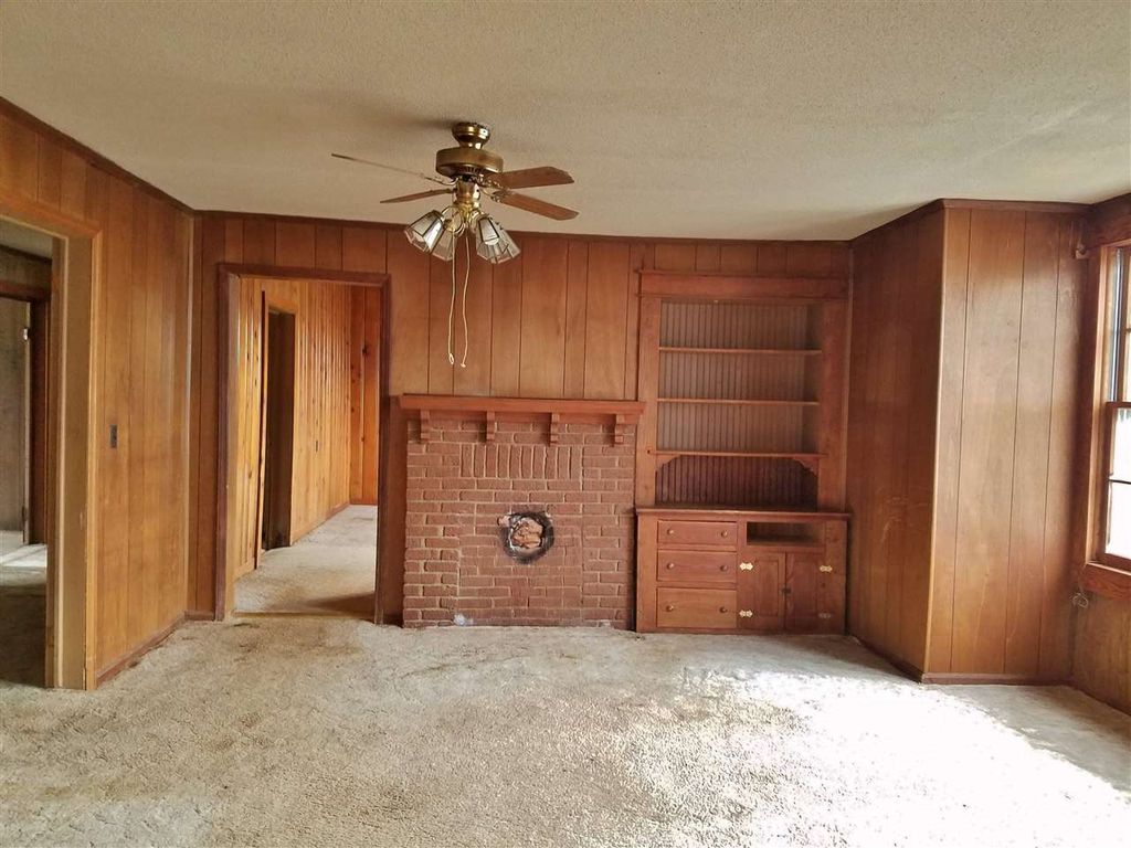 Diamond in the Rough!! – Home with character located on 5 acres, this is a country lover’s dream! Large home with rocking chair front porch, enclosed back porch, 2 outbuldings, and so much more. The attic could be converted to more GLA as well… 3 bedrooms ( one has no closet and one is plumbed for another bathroom), huge living room with fireplace, Den with built-ins, Large kitchen and 1 bath.